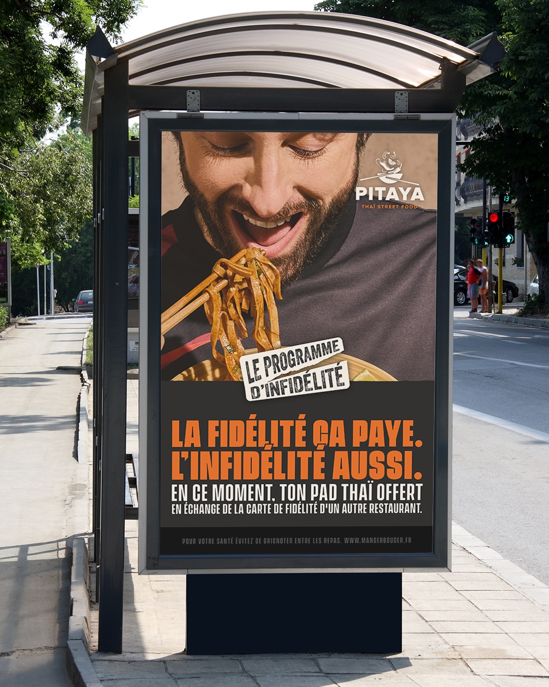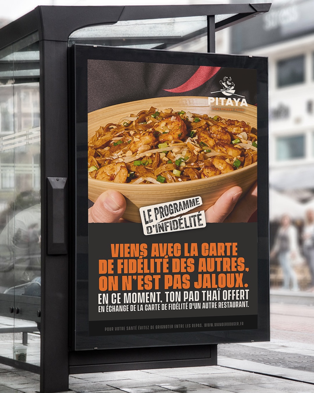 Le midi, on commande souvent au traiteur asiat’ ou libanais du coin - celui avec la carte de fidélité et le plat offert au 10ème tampon. Pour faire découvrir le pad thaï de Pitaya, on a lancé un concept simple : en échange de la carte à moitié tamponnée du resto d’à côté qui dort dans votre portefeuille, on vous offre un pad thaï. C’est ça, le programme d’infidélité.